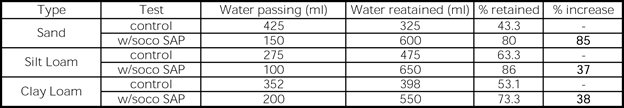 – Tiết kiệm nước tưới và cải thiện khả năng giữ nước của đất 85% (đối với cát);
